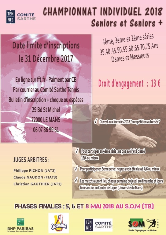 Comme chaque année, le Comité Départemental organise les phases finales du championnat départemental de la sarthe individuel Seniors et Seniors+.